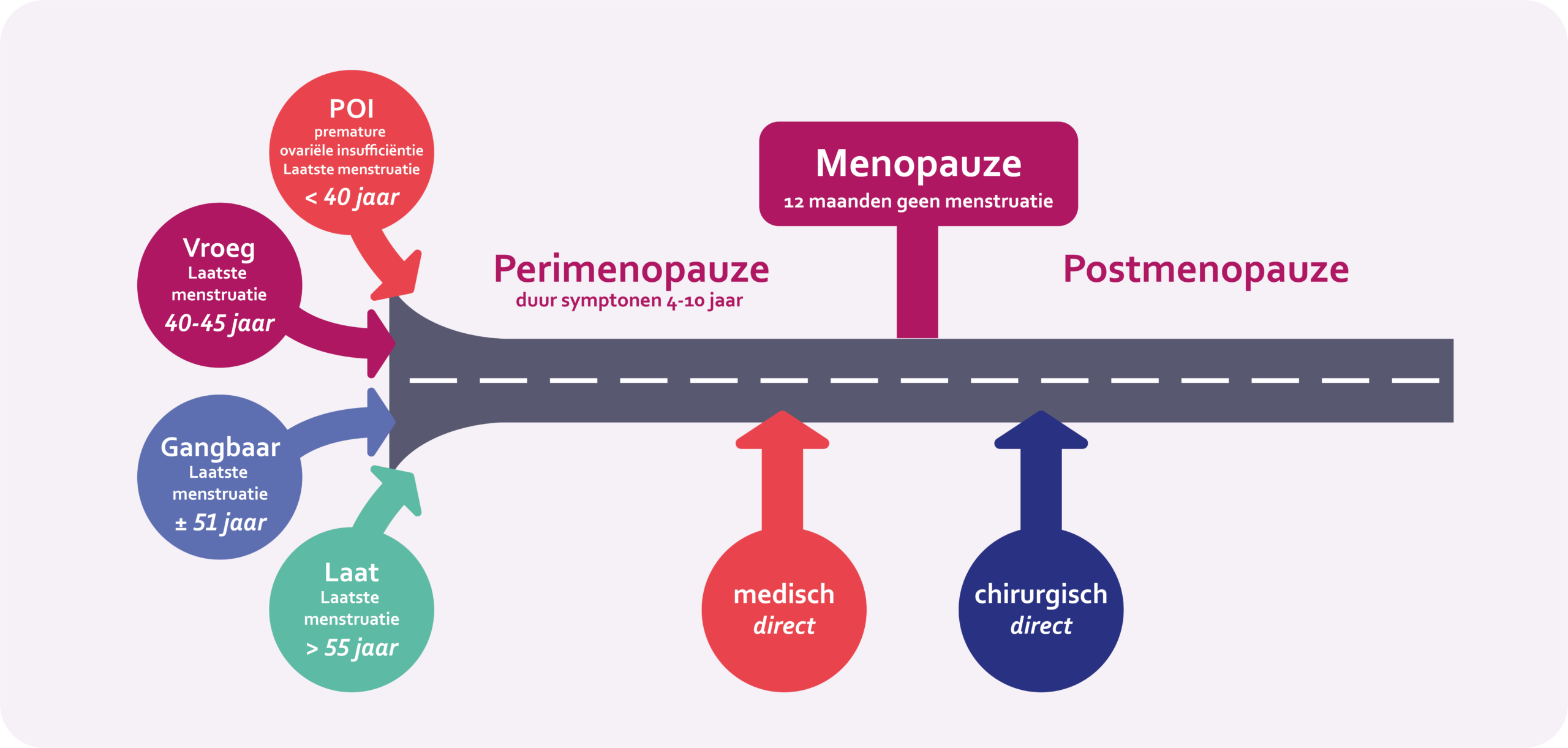POI: bij 1 op de 100 vrouwen is er sprake van een vervroegde overgang, namelijk vóór het 40e levensjaar en 1:1000 vrouwen komt vóór haar 30e in de overgang.